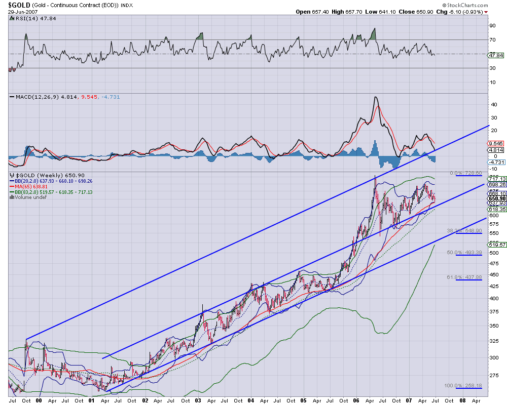 In this chart, I have included the following: -20 Week Bollinger Bands -83 Week Bollinger Bands (roughly equivalent to the 20 Month BBs) -65 Week Moving Average Currently, the lower 20-week lower band rests at $638, and the 65-week moving average sits at $639. Throughout gold's bull market, it has yet to close below both of the aforementioned gauges. Below that, sits the 20-month moving average at $618 and the middle trendline at about $628. Essentially, we see major support at $620 to $640. Going forward, the single question is if that large support area holds up or will gold need to decline further before it breaks to new highs? It is technically possible that gold could decline to the $550-$575 area by the end of the year and still remain in a bull market of course. However, it is obvious that the majority of the evidence now sits in the favor of gold bulls. What about gold lagging stocks and commodities? What about the newly exposed problems with Collateralized Debt Obligations (CDO's)? Gold is a leading indicator and its recent decline could be interpreted as investors fearing a dryup in credit and liquidity. Credit and money growth in the US has been quite high, though in the past few months, the pace of growth has declined. However, as we have argued recently, it is precisely this kind of environment that is best for precious metals. An environment of declining to stagnant growth, declining growth in money and credit, and growing problems with hedge funds ultimately leads to reflation. Many analysts have said that gold will soar when the Fed tips its hand and cuts rates. Yes, and remember that markets are forward thinking. Precious metals should begin their next major advance before the Fed tips its hand. That also portends to a falling dollar. The dollar's spring recovery has abated and in the coming weeks, will once again threaten that key 80 level. HUI & XAU Analysis follows for Trendsman readers.... For more fundamental and technical analysis and to see our top picks and model portfolio, sign up for our free email newsletter on this page of our website: http://trendsman.com/?page_id=17 Jordan Roy-Byrne Website: www.trendsman.com Email: Trendsman@trendsman.com (Trendsman is currently a free email newsletter)