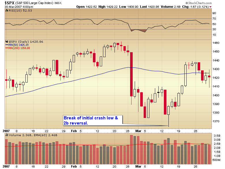 In `07 the initial crash low was tested and broken followed by a 2b reversal.