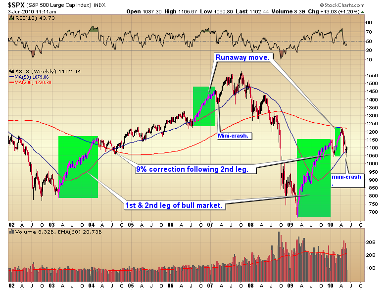 For some time now I've noticed the similarities between the `02-`07 cyclical bull and what we've experienced since March of last year. The one difference is that this time we've truncated the middle phase of the bull. I suspect that was a direct result of the massive liquidity Bernanke ... and all central banks have pumped into the system.