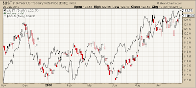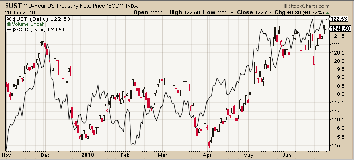 Bonds and gold are currently tied to the hip. Investors still need to figure out what is happening. Eventually they will. Bonds will fall while gold rises as the sole "flight to safety" trade.