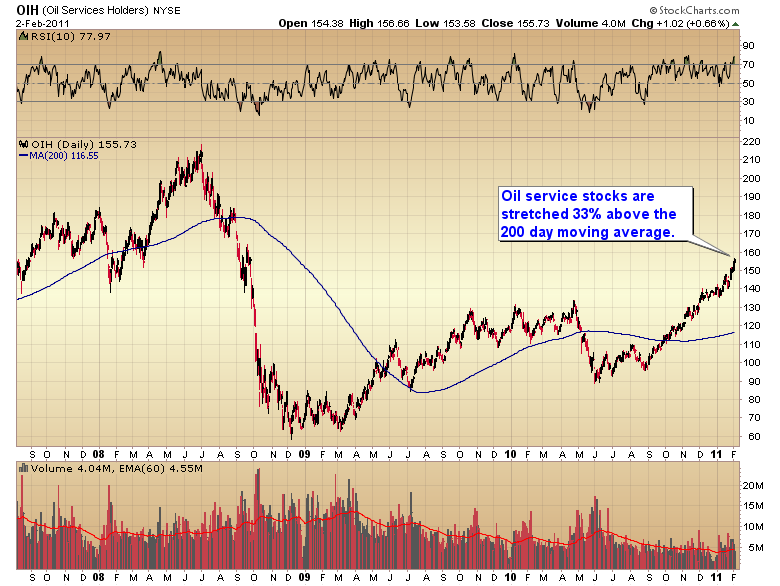 For instance, the oil service ETF is now stretched 33% above the 200 day moving average.