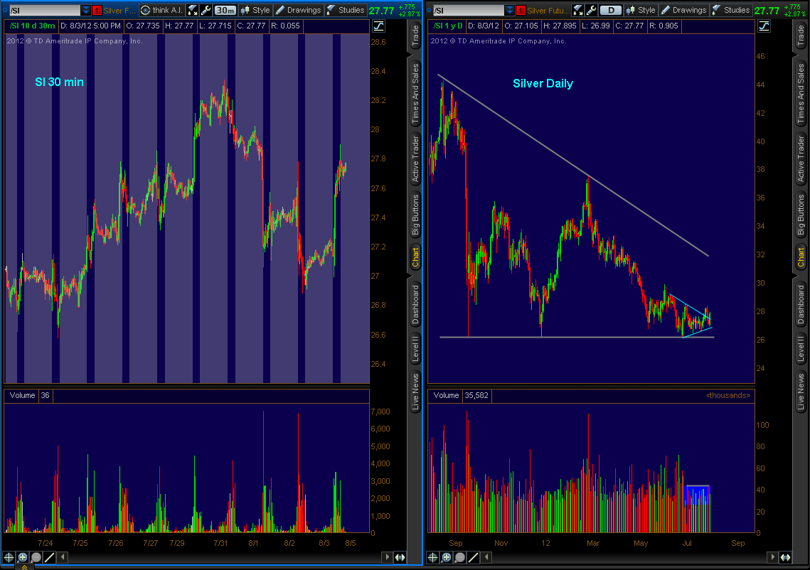 The one thing that is encouraging from a trading perspective is there is some clear skies for almost $4.00 an ounce to major trendline resistance if silver can get another run above $28.00