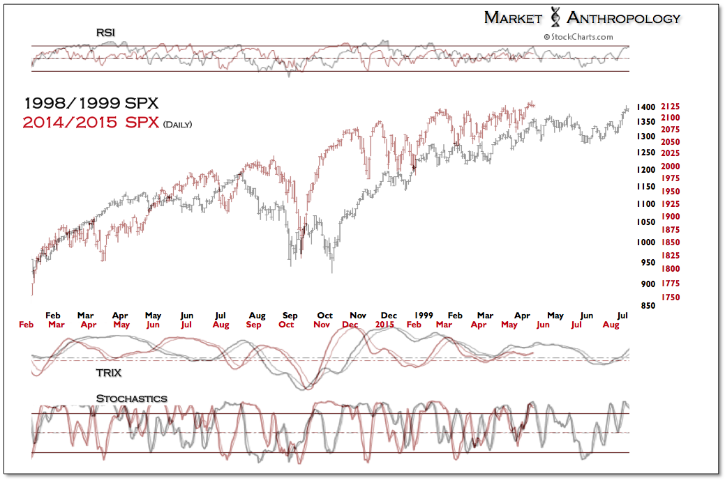 We included comparative updates for these periods, that were again normalized based on the respective exhaustion pivots of the SPX:Oil ratio. SPX:Oil