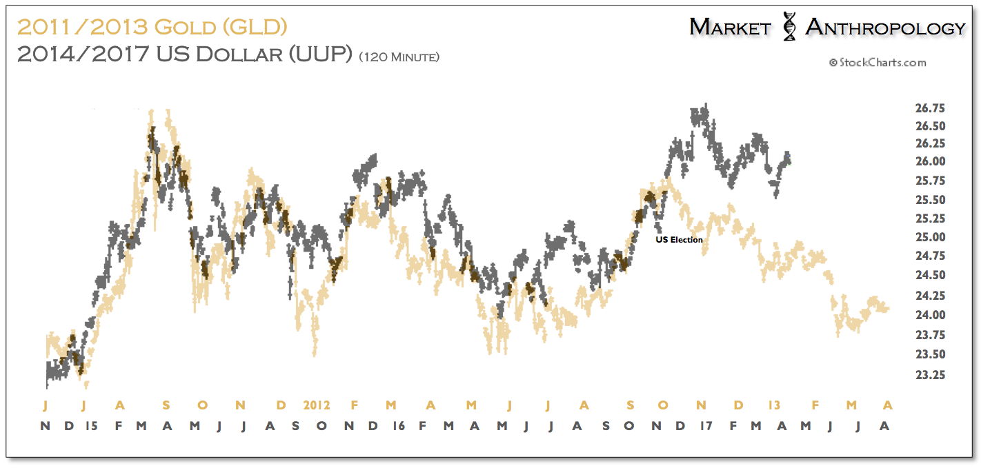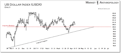 Coming into last fall, we had noted that the US dollar index was mimicking the broad top carved by gold back in 2011 through 2013, on the flip side of the cycle where inflation had crested in 2011 and the US dollar and real yields began to materially rise.