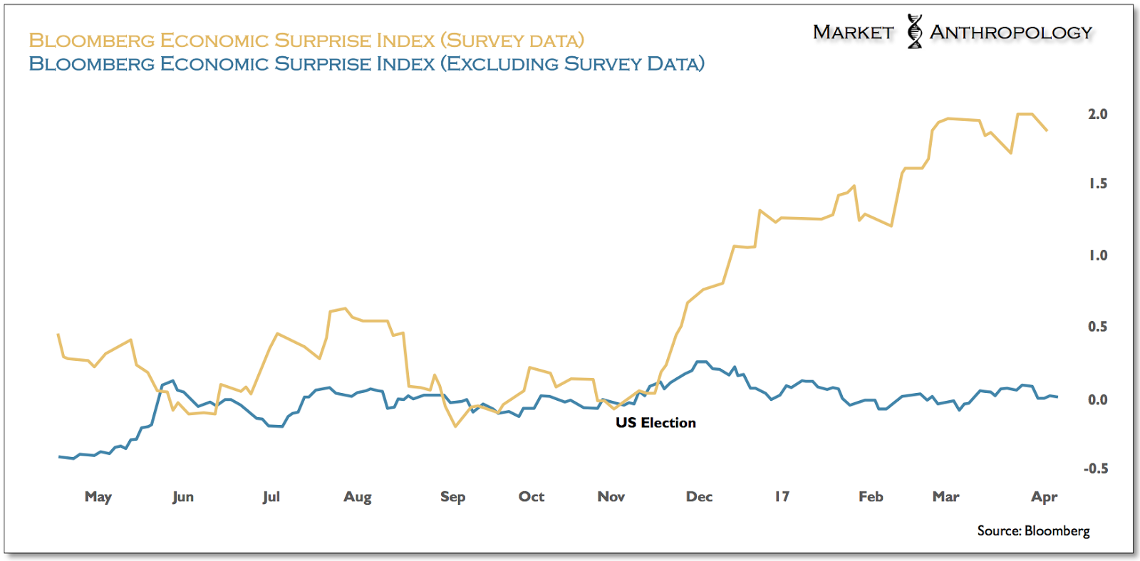 This dynamic is reflected by the significant shift in business outlooks that transpired after the US election, as economic sentiment surveys sharply diverged higher from the actual realized data on the economy.