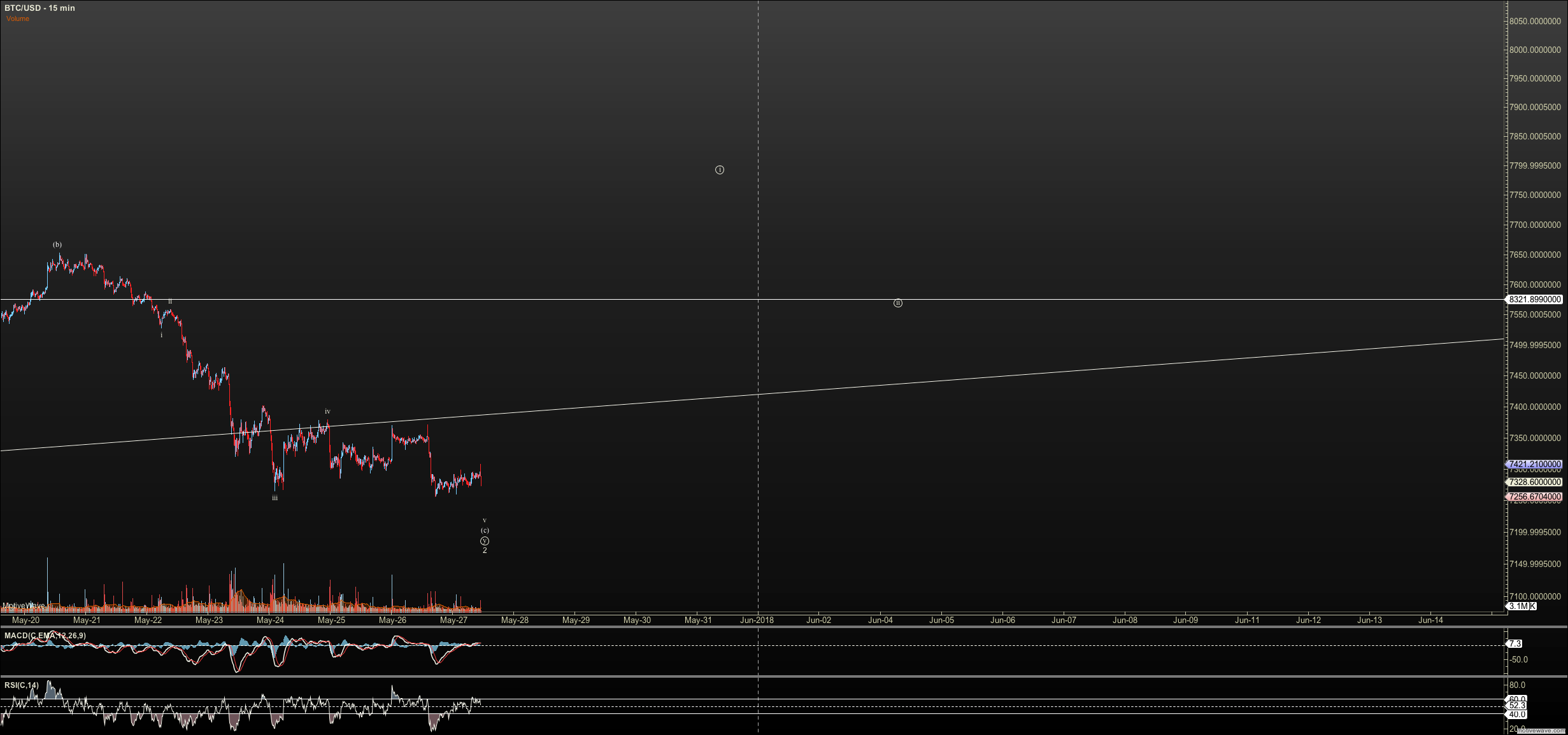 For Ethereum, that ideal level is $495, with $430 the lowest I allow. We are still slightly shallow in Ethereum. Bitcoin ideally held $7,624 and we have a small breach. But as long as it is over $7,085, I will give this room to start a third wave.