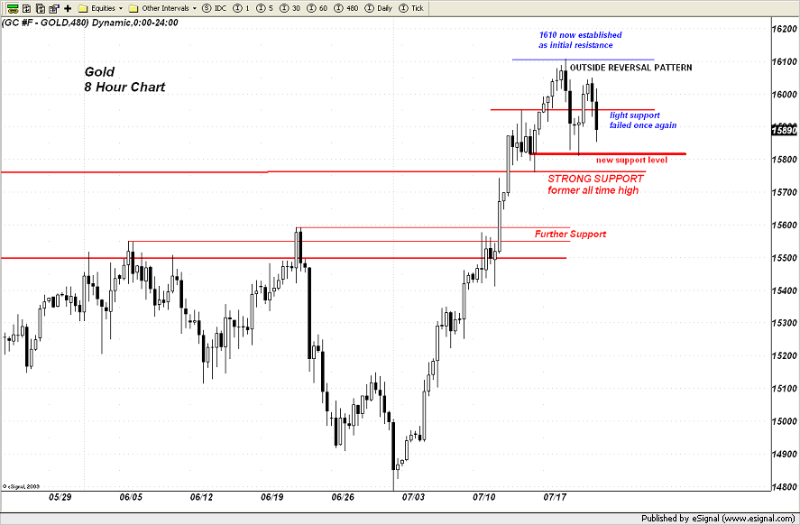 Either way, gold, after staging a titanic struggle revolving around the $1600 level, was knocked lower once that news story broke which gave the day's victory to the bears who managed to keep the metal from holding firm above $1600. Solid Asian-based buying last evening had pushed it further to the upside from yesterday's pit session close in New York and set the stage for the push above $1600 so we will have to see if those buyers come back in this evening. It does appear that as I write this commentary, buyers have appeared in the $1580's again.