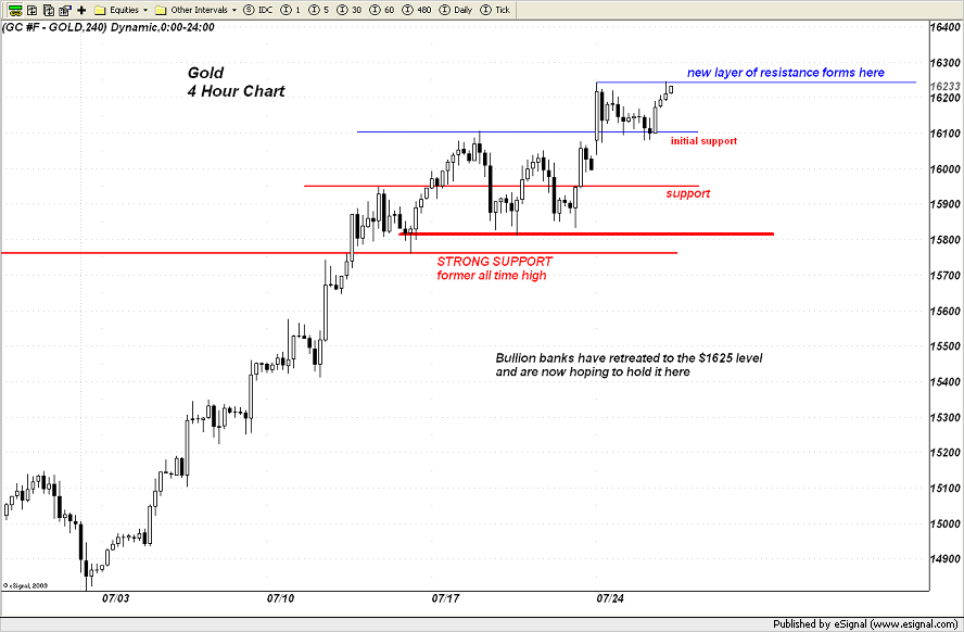 Gold is acting in textbook fashion according to the technical signals thus far. Once it took out the overhead resistance level that the bullion banks were attempting to enforce at the $1610 level, the weaker shorts who were piggybacking the large bears had to beat a hasty retreat and cover. Their buying triggered some of the system trades to send in additional buy orders with the result that prices shot directly to the first resistance level near $1625 before setting back a tad.