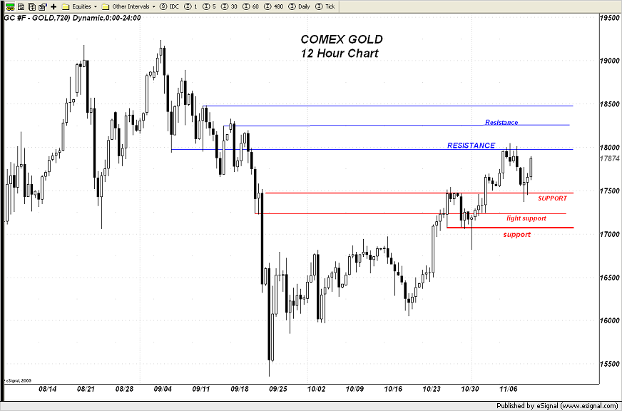 Aiding the cause of the gold bulls is the very strong showing in the HUI today as it is currently up better than 3% and is above the 600 level on that index's chart. A strong close above this level to end the week would be very constructive on the weekly chart and would set the sector to mount a charge to the 610 level early next week. Failing to hold above 600 would discourage some of the bulls.