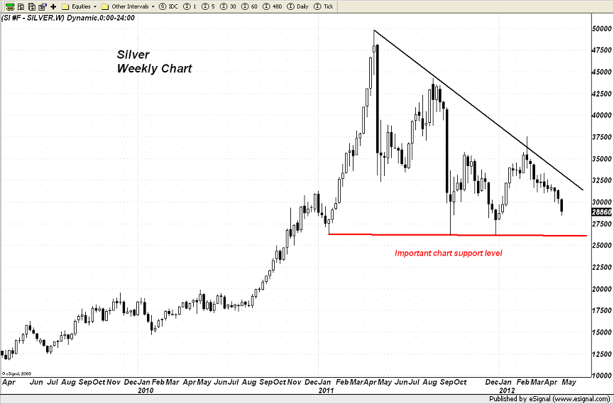 Unless something changes rather drastically over the next week, it looks like it is going to once again test the resolve of those buyers that have been busy down there. If it holds, fine; if not, it would get rather ugly for silver.