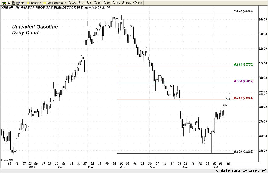 “Call it a "stealth rally" as it has not been garnering any headlines, but unleaded gasoline futures have quietly been on the rise for the last three weeks after bouncing off of the $2.50 level and are now pushing back towards the important 50% Fibonacci retracement level of the entire decline from the late March peak.