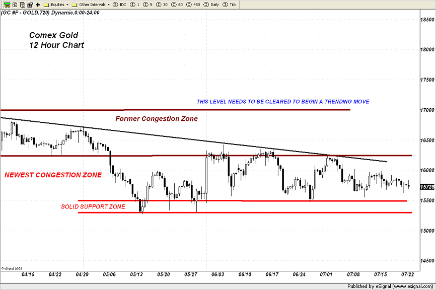 For the last two weeks, every time silver has pushed below the $27 level, it has always popped back above that level before the session has closed. That has indicated the presence of strong buying. If these buyers do not surface before the end of today's trading session, silver will very likely head lower and retest the key $26 level. It must hold that level to prevent another round of long liquidation and fresh short selling by hedge funds playing the "slowing global economy" theme. Weakness in the mining shares is not aiding the cause of the bulls right now.