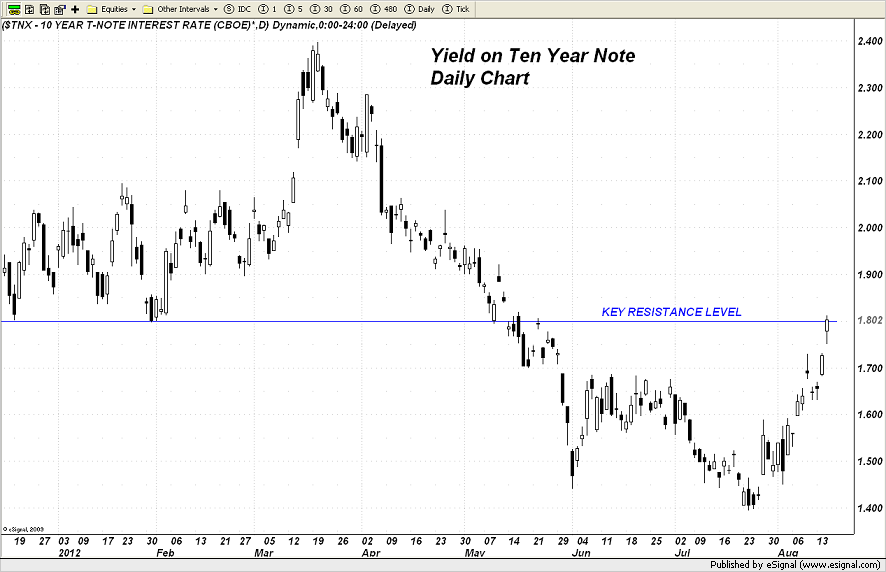 If this market however does not reverse course soon, chances are we might have seen a long term low point in interest rates. Stay tuned on this one folks as it will have implications for gold.