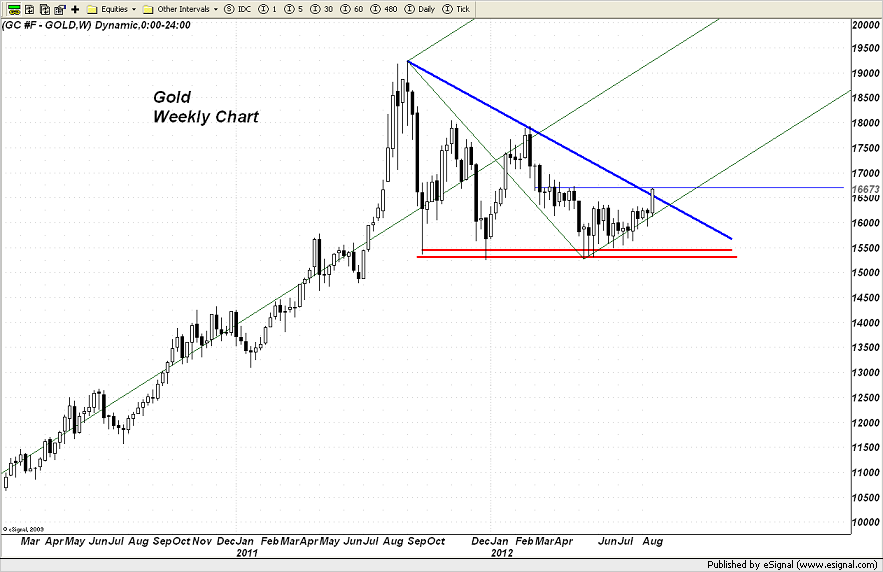 “The following weekly chart provides a bit of longer term perspective as it shows the very solid level of buying support that has marked an accumulation phase by some very large players down below the $1585 - $1565 level. That buying has forged a bottom in this market while it slowly gathered steam for an upside breakout that forced the hands of the speculative shorts and enticed momentum based money flows back onto the long side of the market.