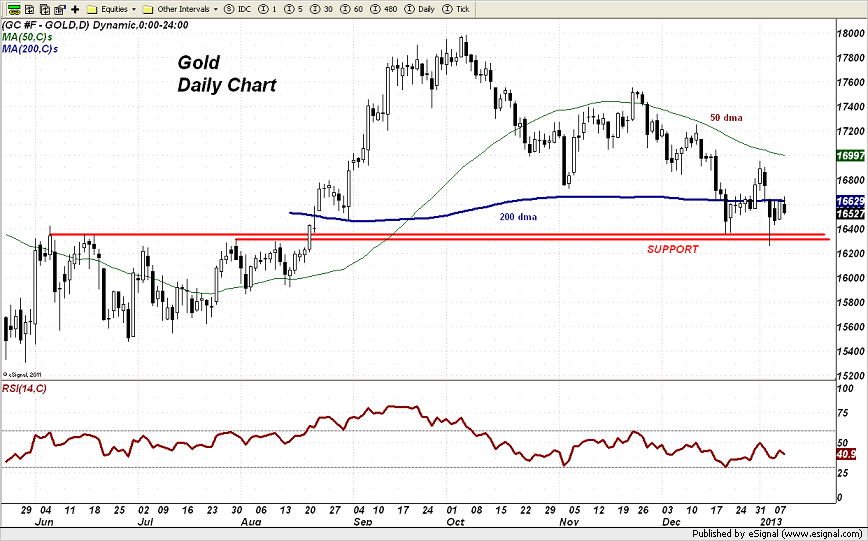 Unless or until the bulls can take out the 200 day moving average and then get the price back above last week's high, the support level is going to be in danger if physical demand slacks off one iota. Once again it will be up to that side of the gold equation to try to put a firm bottom in this thing especially with speculators in a selling mood.