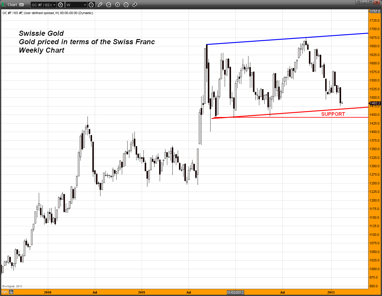 The European finance ministers are hoping that hedge funds will continue to move money into European equities as well as European area bonds. If they can herd them into these sectors, money flows into gold might be dented sufficiently to breach the downside support levels indicated on the charts. On the other hand, enough players might just be suspect enough of economic/financial conditions in the Euro zone and in Britain to want to hedge their bets with the yellow metal. Again, it is unclear. If the gold bulls in terms of the Pound, Swiss Franc and Euro are ever going to need to perform, it is right here and right now.