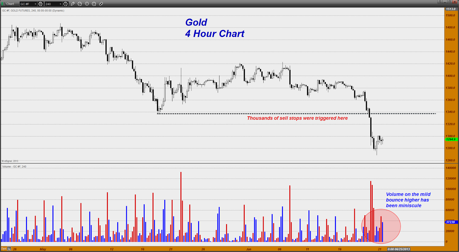 “Gold is putting in a "dead cat bounce" in today's session after setting a fresh low of $1268 in early Asian trading last evening. For those of you new to our trader's lexicon - even a dead cat will bounce if it is dropped to the ground from a high enough point.
