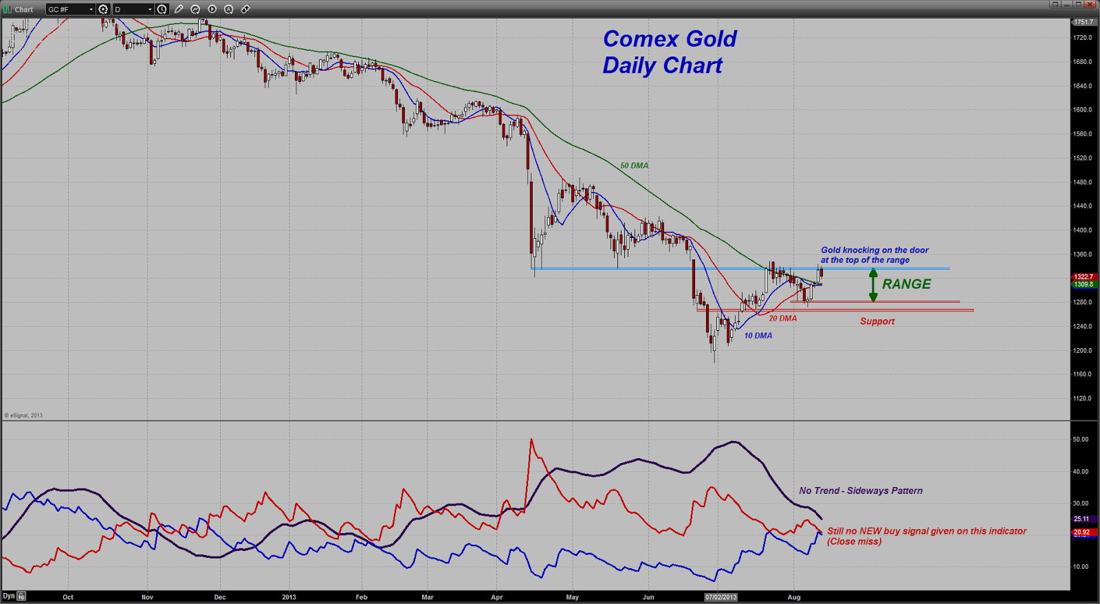 For the shorter=term oriented traders - gold is knocking on the door at the very top of the range but still has not forced it open. IF (note the emphasis) the market can stick around here closer to the top of the range and stay above $1300, the onus is going to be on the bears to cap it off because the seasonal tendency for the metal to rise heading into the 4th quarter is going to make life tougher for them.