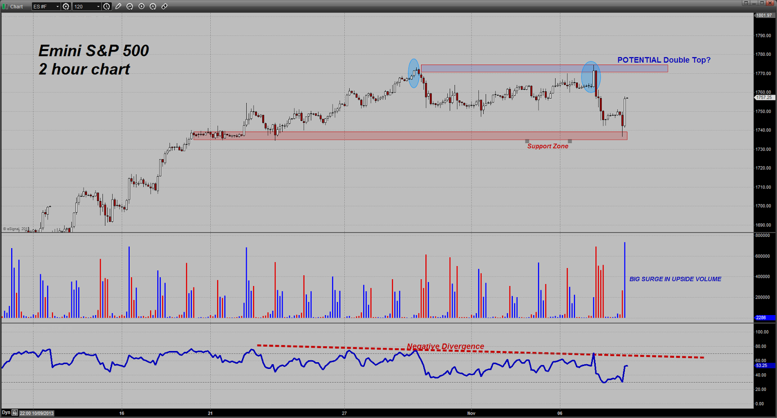 Each time this market has moved lower, bulls have moved in, bought the dip and then been rewarded by a move to yet another all-time high. However, this time around we do have the POTENTIAL for a double top up above 1770. Shell-shocked bears are going to be watching very closely for any signs of this market stalling out. They have gone back into hibernation today but will awaken in a surly mood if the technical chart tells them to pounce.”- Dan Norcini, More at http://www.traderdannorcini.blogspot.com/