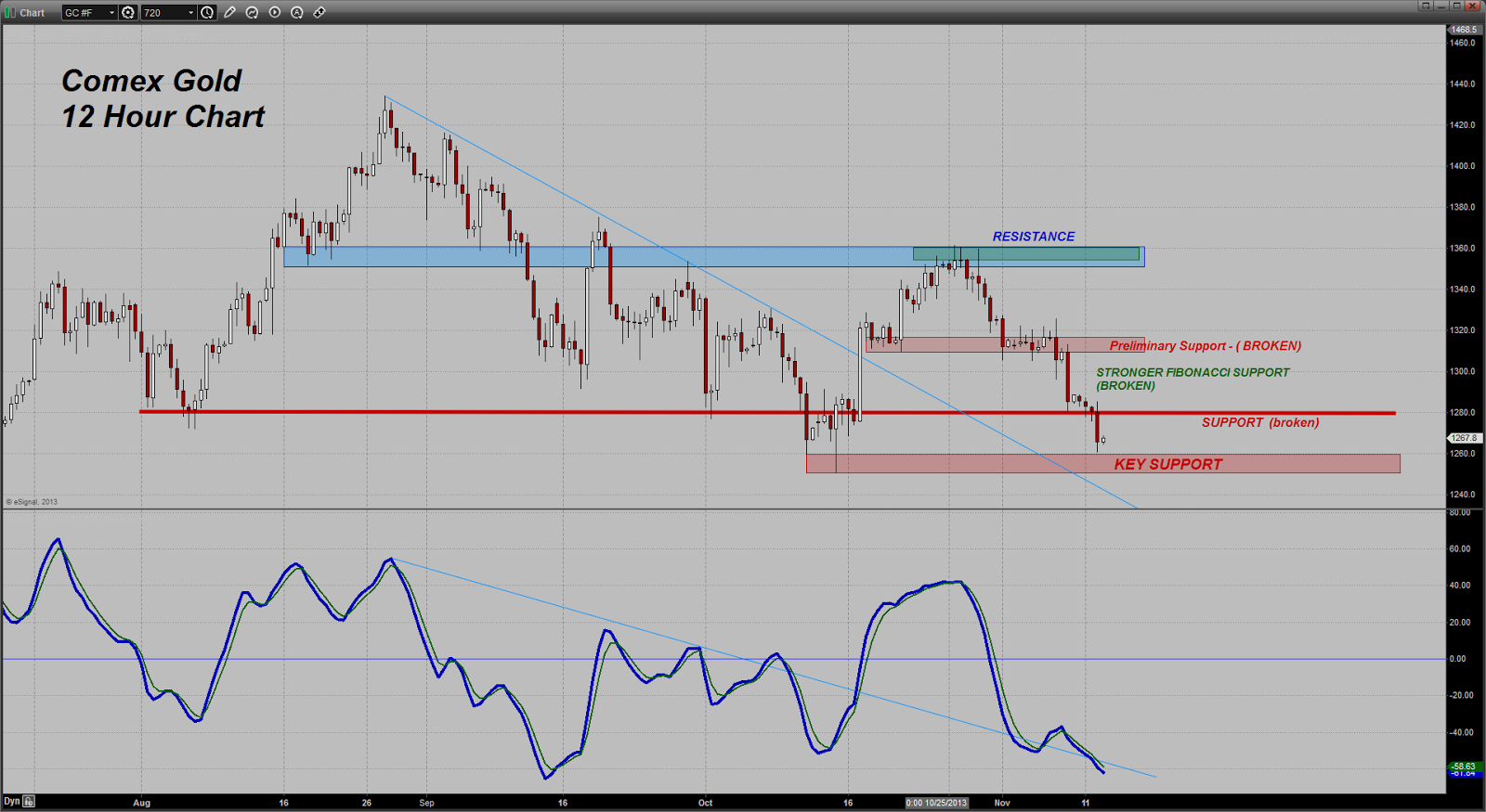 Gold has also lost an important level of chart support in today's session. This level, $1280, was very important as the price has tended, since August, to uncover some decent buying down here. In the middle of October, it did fall below this point, but its stay down there was only a couple of days in a row at best. If gold can recover in Asia this evening or by Thursday of this week, it will have dodged a bullet. If not, look for the next key support level to come under a test. If the Dollar takes out 81.50 on the USDX, gold is going lower.”- Dan Norcini, More at http://www.traderdannorcini.blogspot.com/
