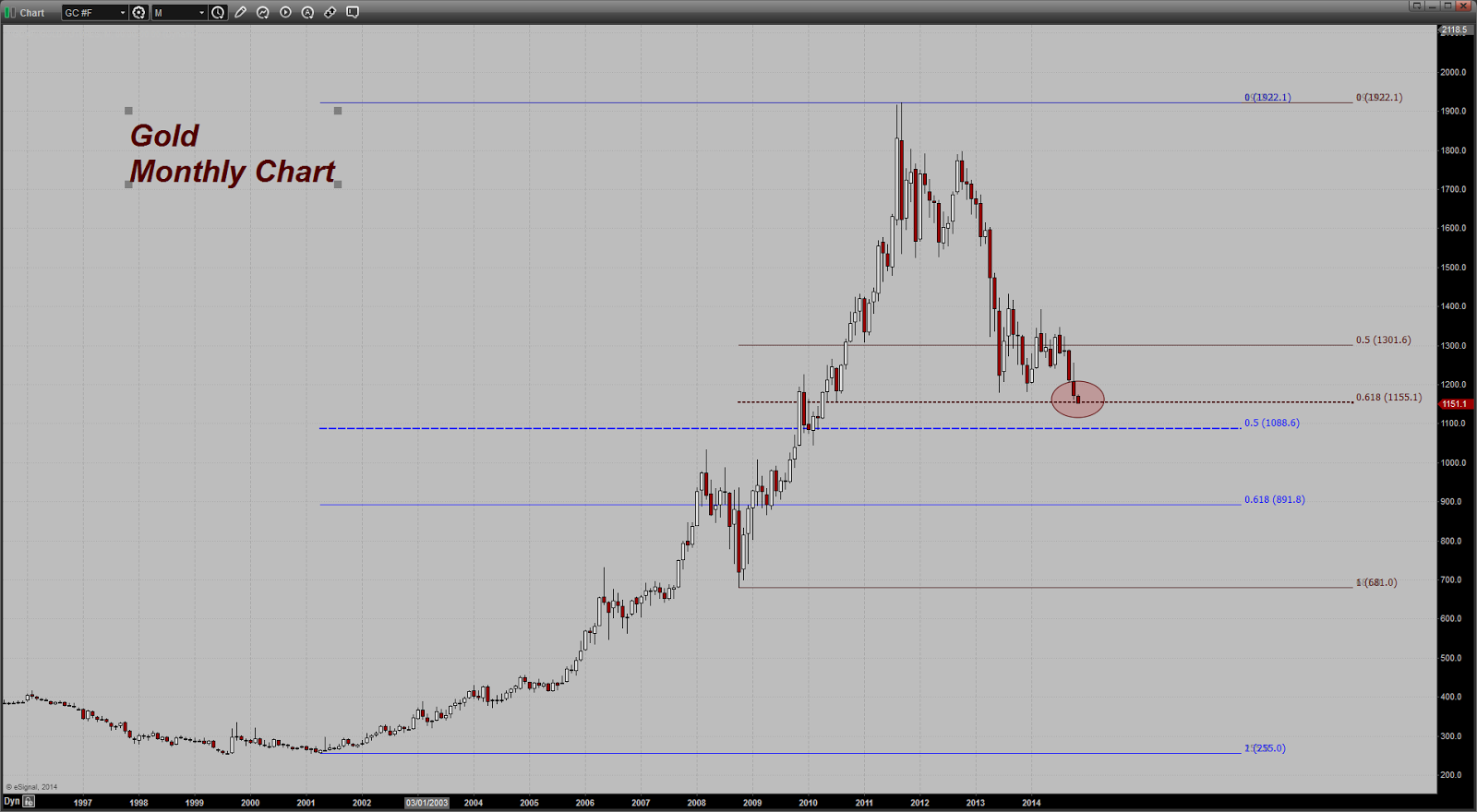 Please refer to the chart I posted last evening showing the various support levels for the metal. The first zone of support, near the $1150 level, has been shattered conclusively. Gold now looks to have its eye on the psychological round number of $1100.